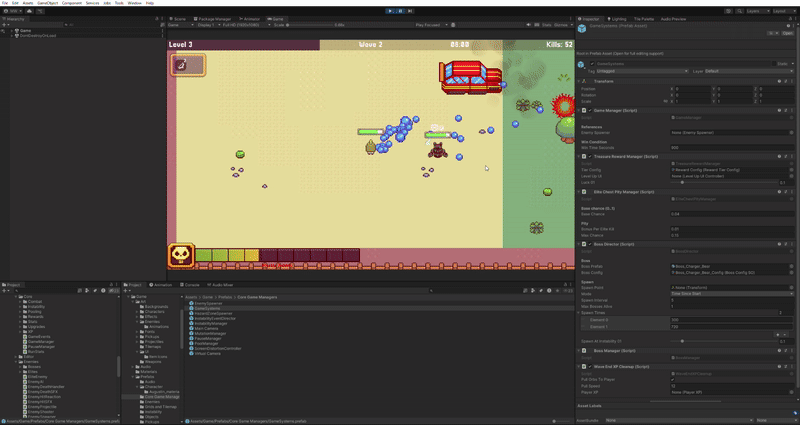 - Survive waves, defeat bosses, and manage escalating difficulty