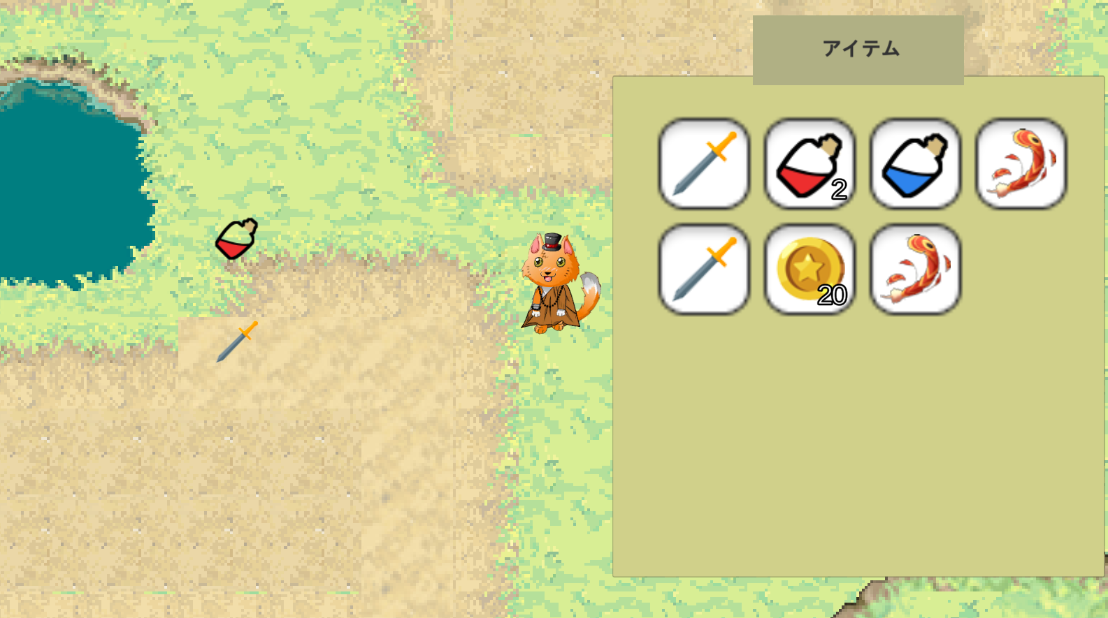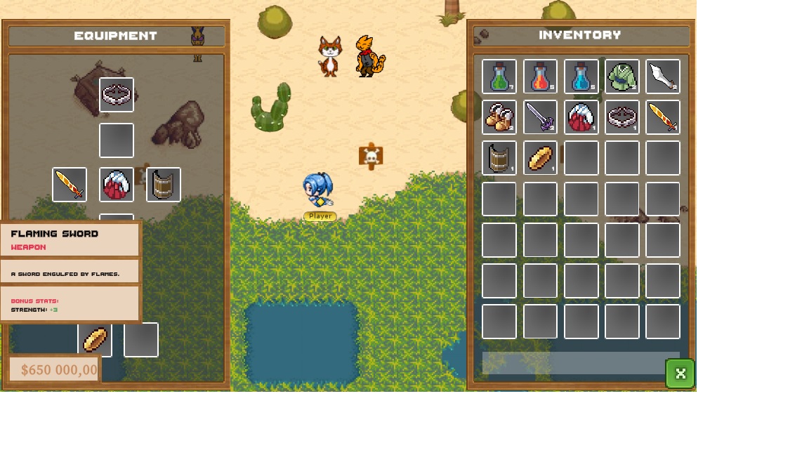 Inventory system with being able to pick up items from the world map: